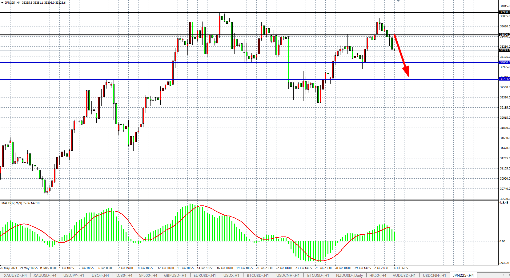 支撑位:33000 32700