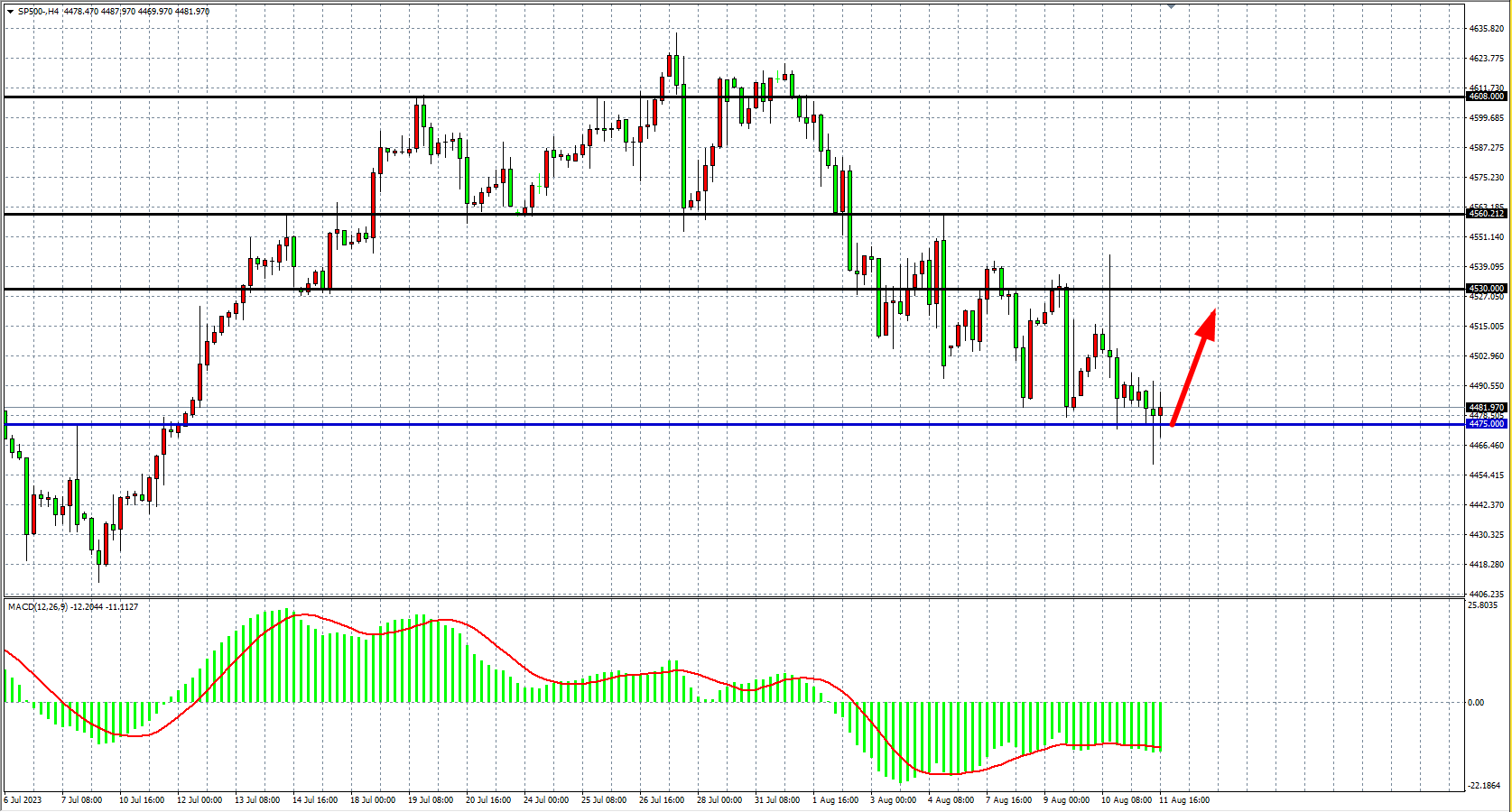 4小时图看,标普围绕4495附近继续震荡,MACD量能在零轴下,行情走势仍较疲弱,支撑关注4475附近,阻力关注4540附近。