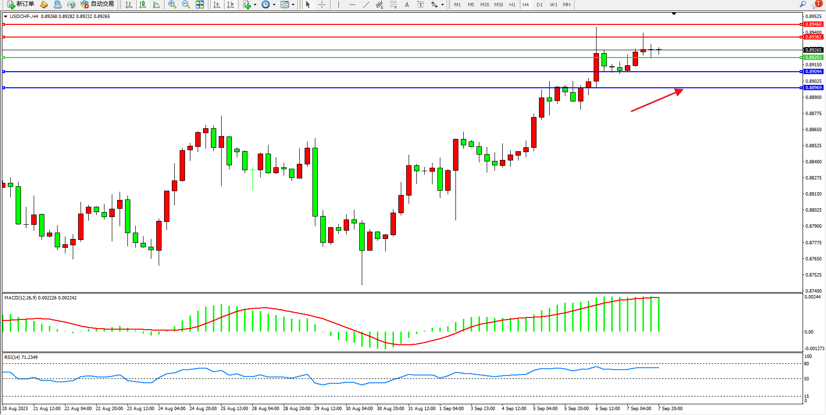 美元瑞郎USDCHF——4小时K线图显示: