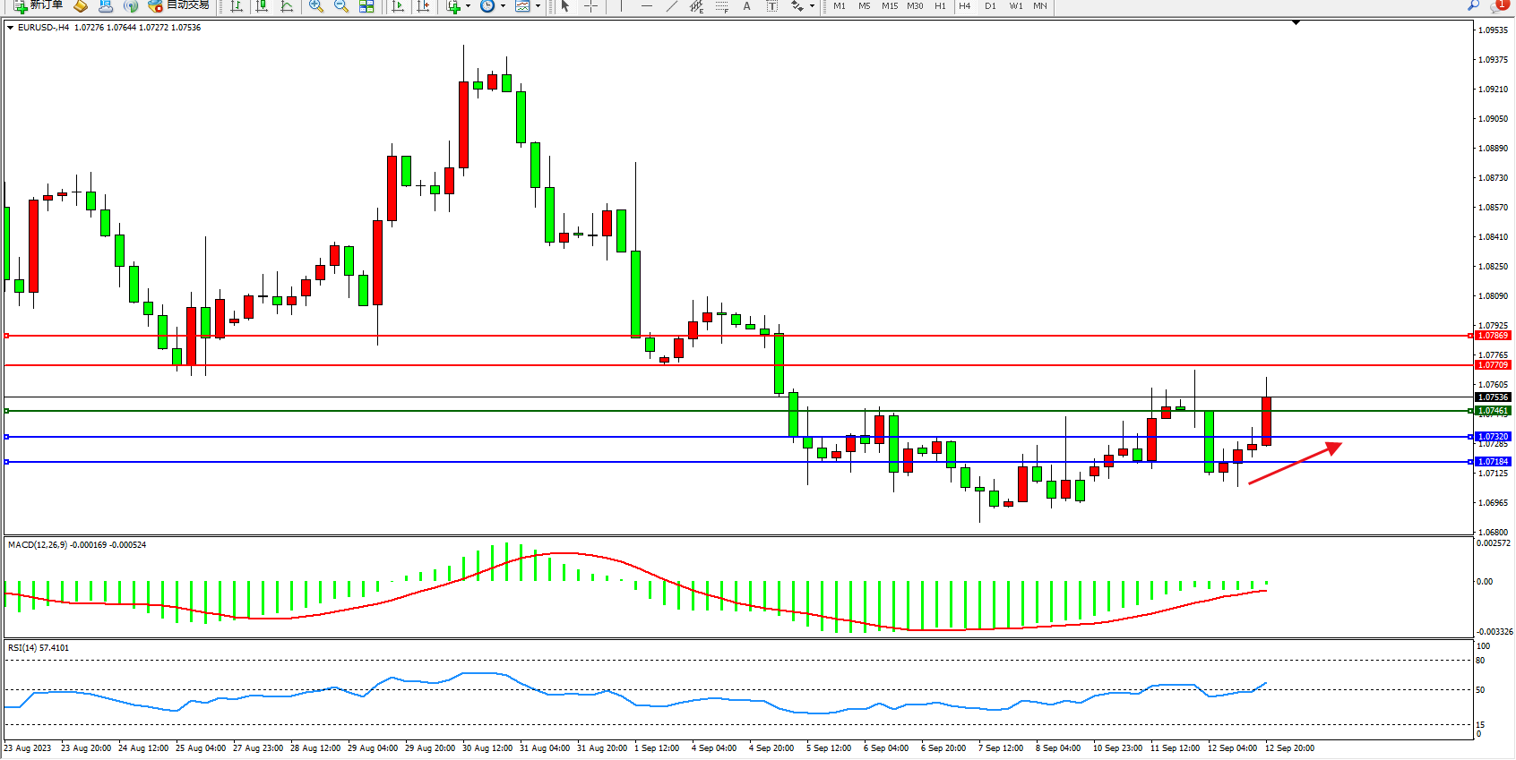 交易策略:1.07461上方看涨,目标1.07709 1.07869