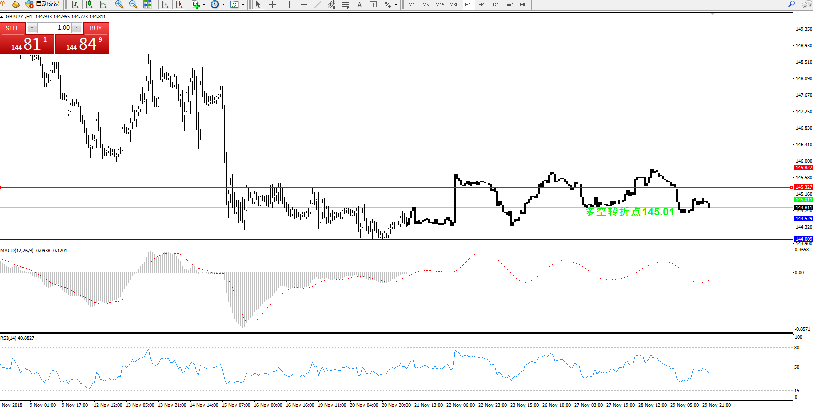 交易策略:倾向于做空为主,145.01下方做空,目标144;