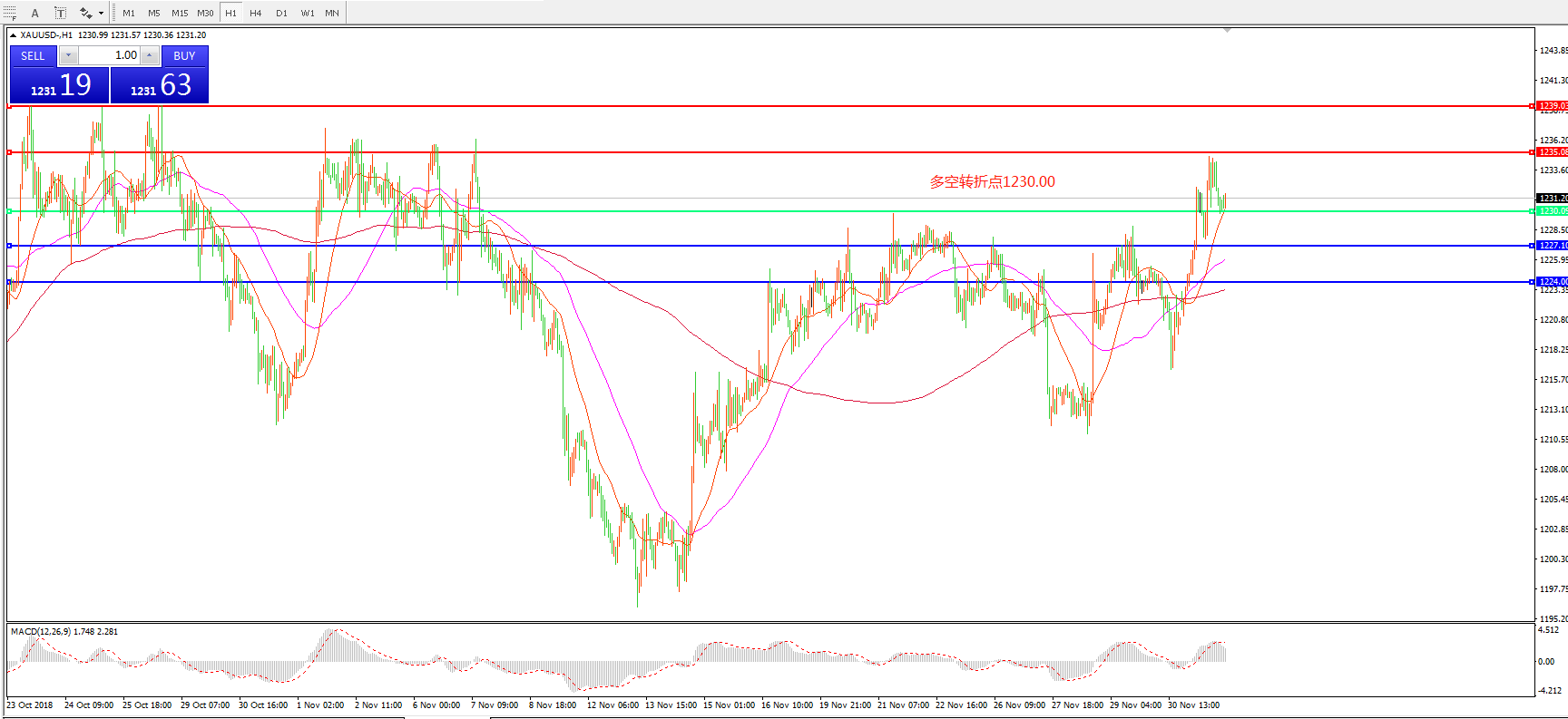 多空转折点:1230.00