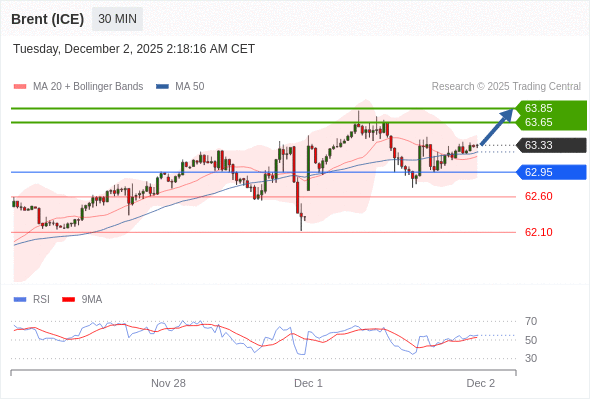 在 62.95 之上,看涨,目标价位为 63.65 ,然后为 63.85 。