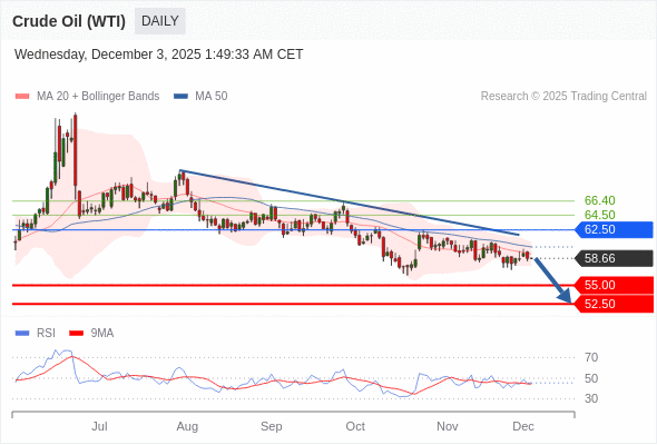 交易策略: 在 62.50 之下,看跌,目标价位为 55.00 ,然后为 52.50 。