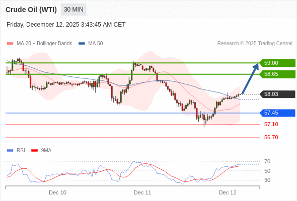 在 57.45 之上,看涨,目标价位为 58.65 ,然后为 59.00 。