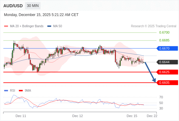 在 0.6670 之下,看跌,目标价位为 0.6625 ,然后为 0.6605 。