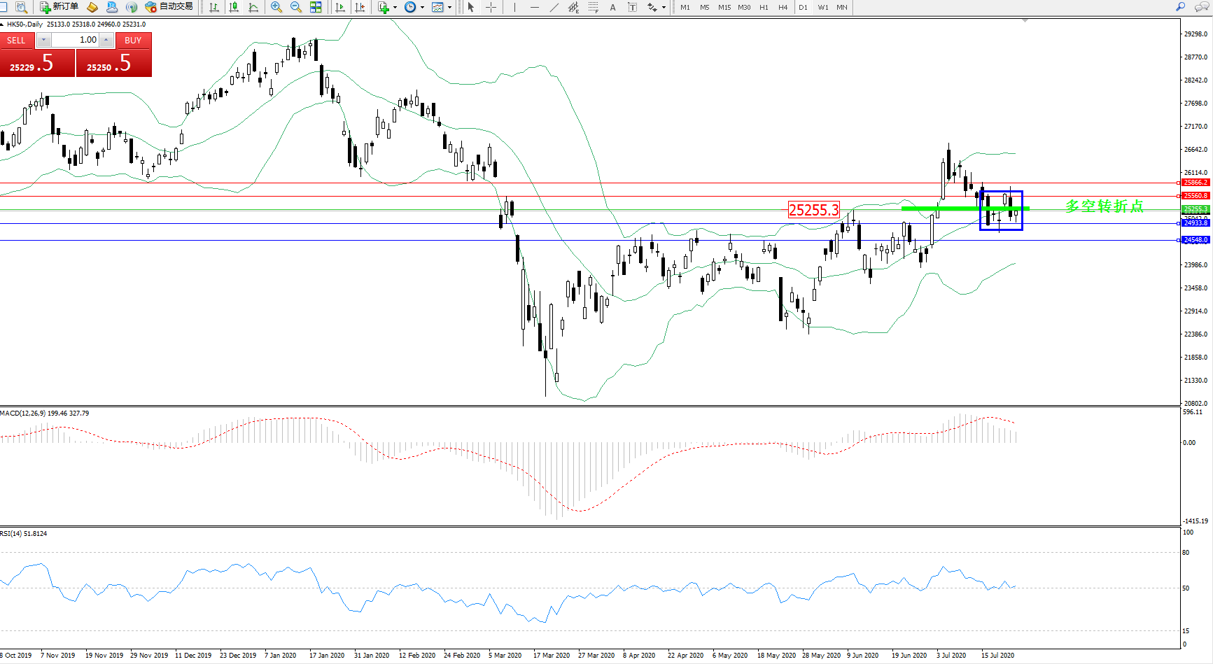 恒指HK50 ——日K线图显示: