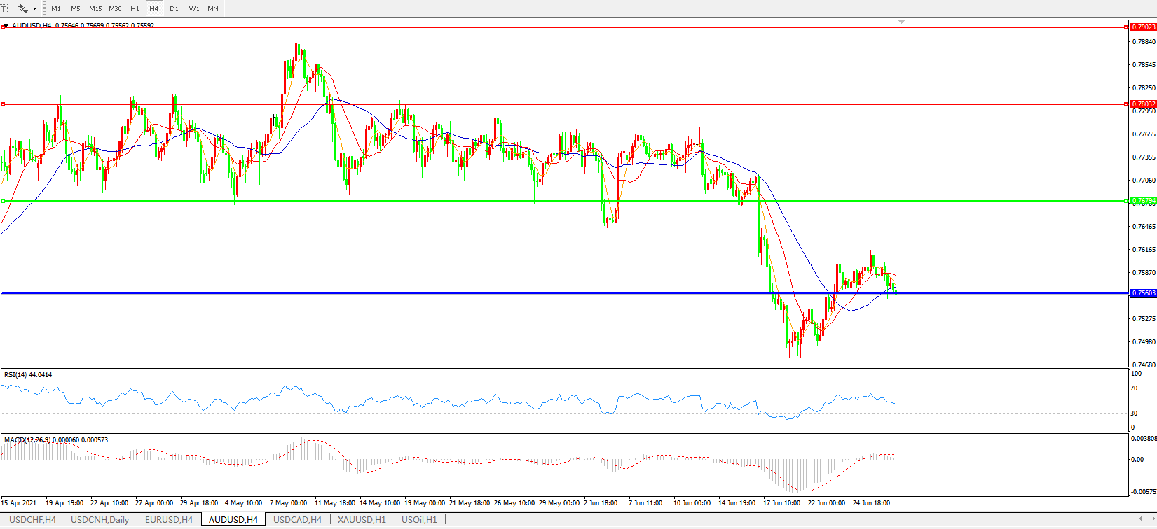 AUDUSD    4小时图: