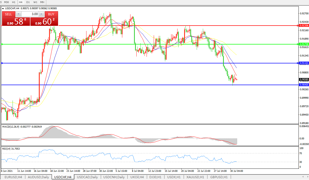 美元兑瑞郎USDCHF 4小时图:
