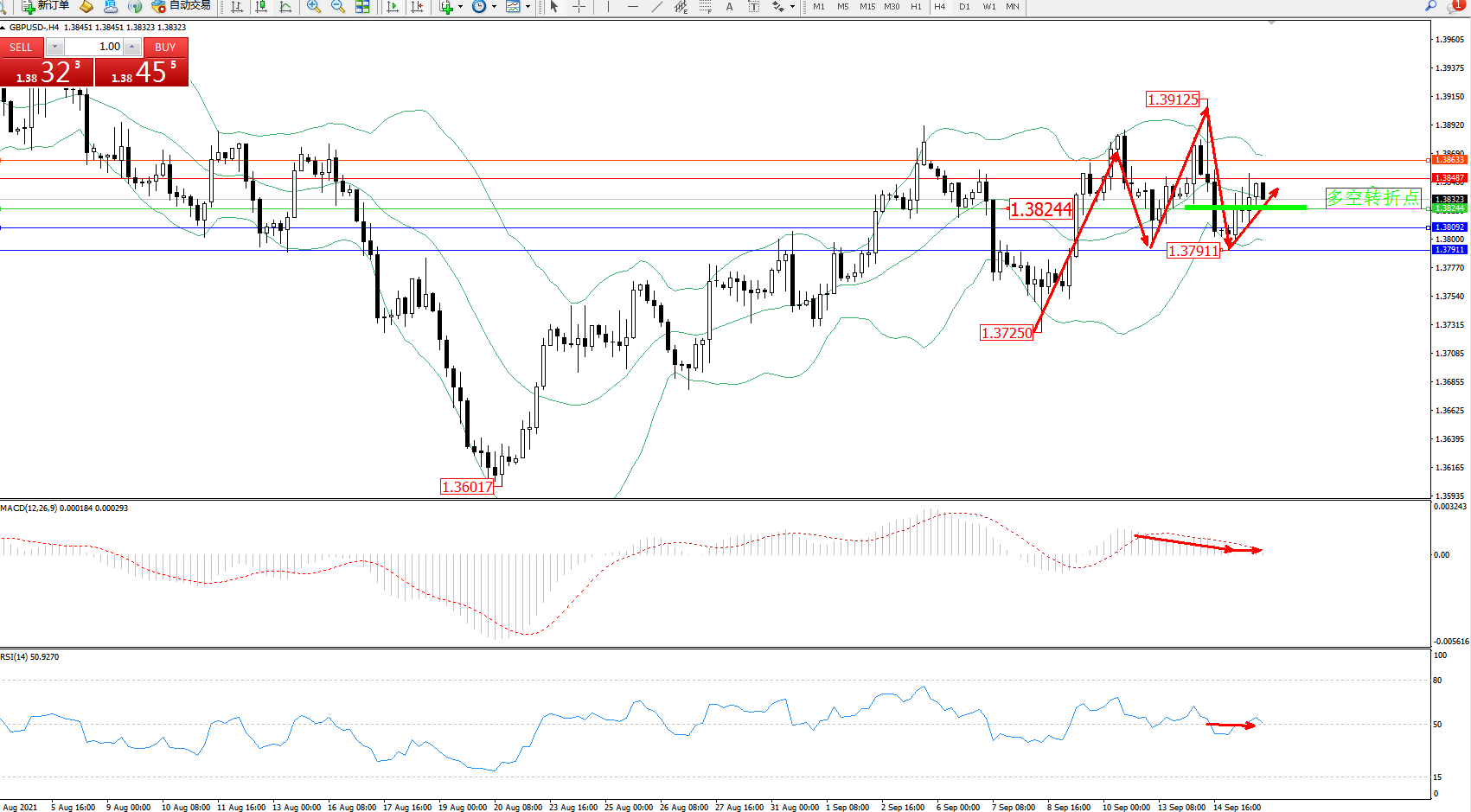 交易策略:1.38244上方看涨,目标1.38487、1.38633