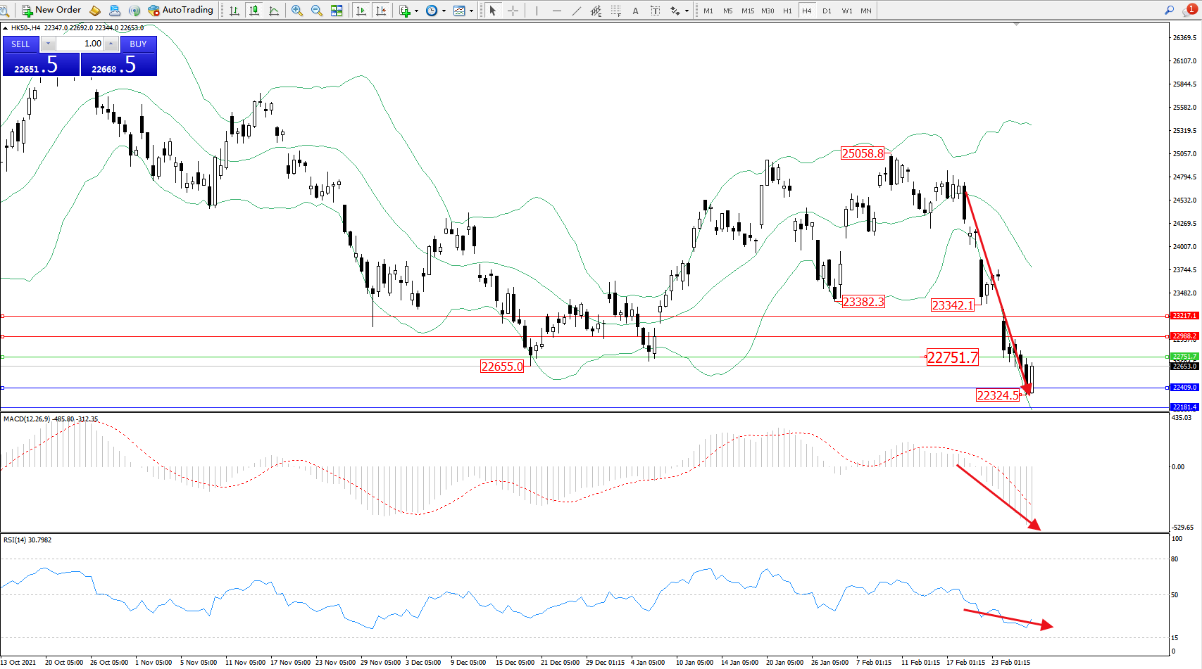 技术点评:空头动力延续布林带指标通道下轨附近持续震荡下挫,低位抵达22324附近得到短暂支撑后开始整理,短期空头动力有继续下行态势, 布林带指标呈张口走势态势良好,下行跌势尚未有最终止步迹象,MACD指标处于空头区域维持震荡下挫,RSI指标处于空头区域不断震荡下行;