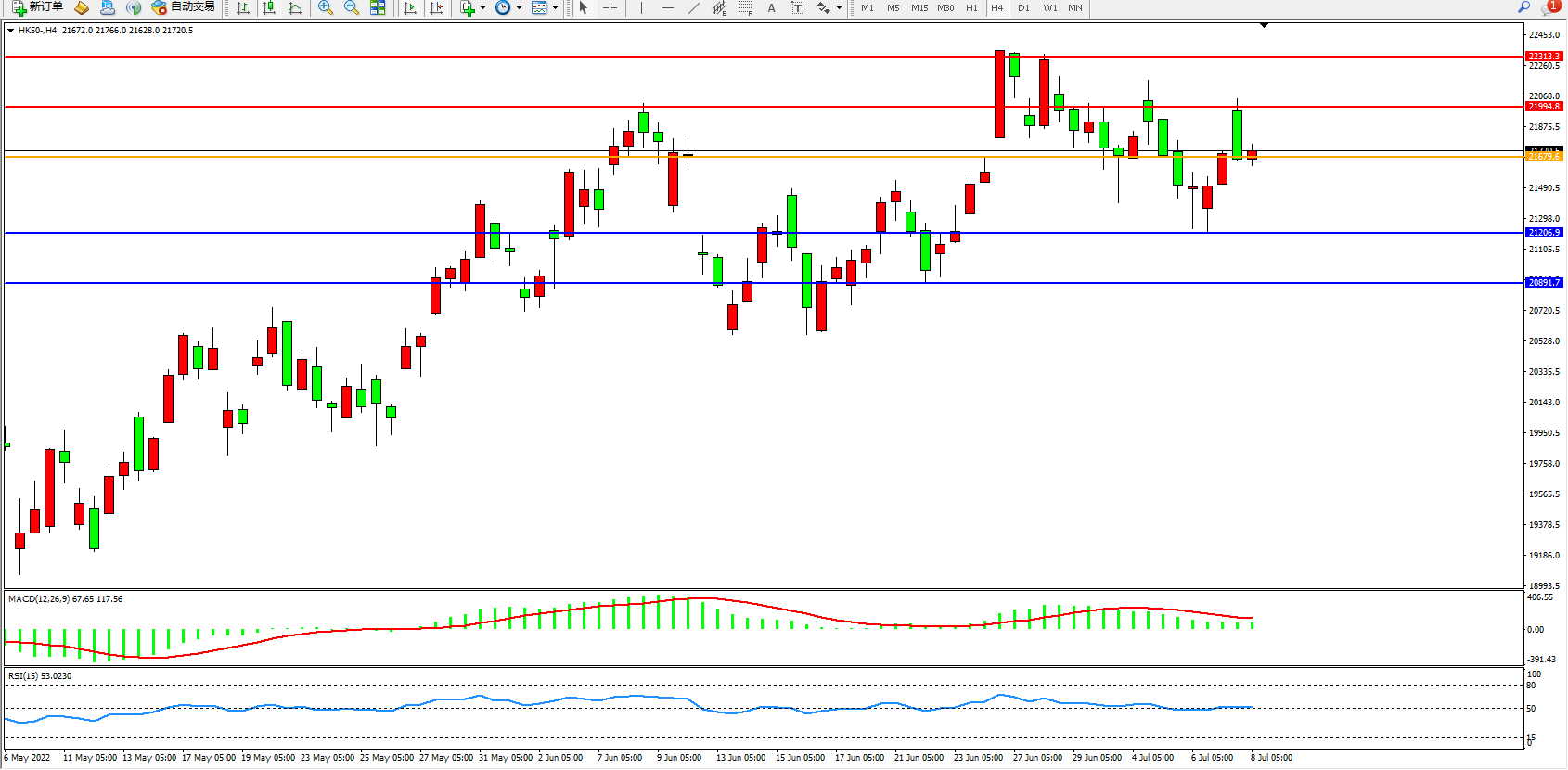 恒指HK50 4小时图