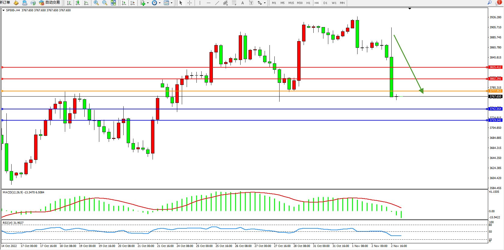 标普500指数11月2日(周三)收盘下跌97.25点,跌幅2.52%,报3758.85点;美联储将基准利率上调75个基点至3.75%-4.00%区间,为连续四次加息75个基点,今年已累计加息375个基点。将贴现利率从3.25%上调至4.00%。