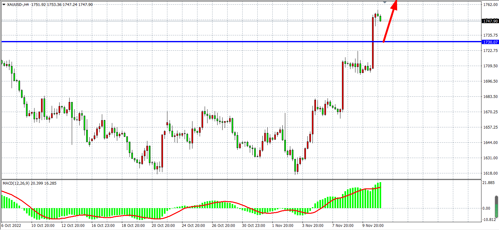 现货黄金XAUUSD 4小时图