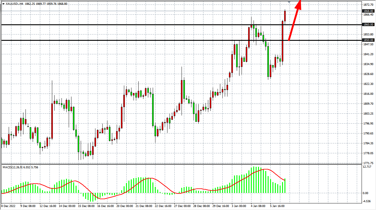 交易策略:在1850.00 之上看涨,目标1878.00 1900.00