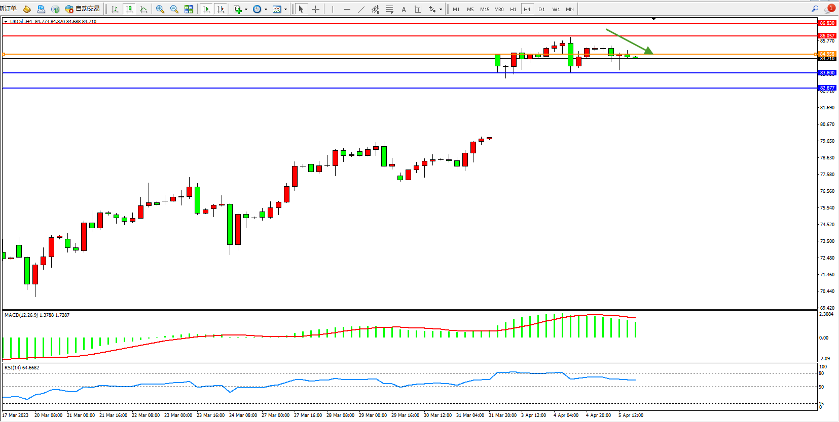 布油UKOil——4小时K线图显示: