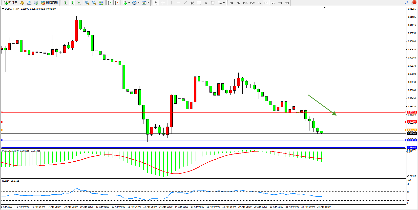 交易策略:0.88629下方看跌,目标0.88618  0.88460