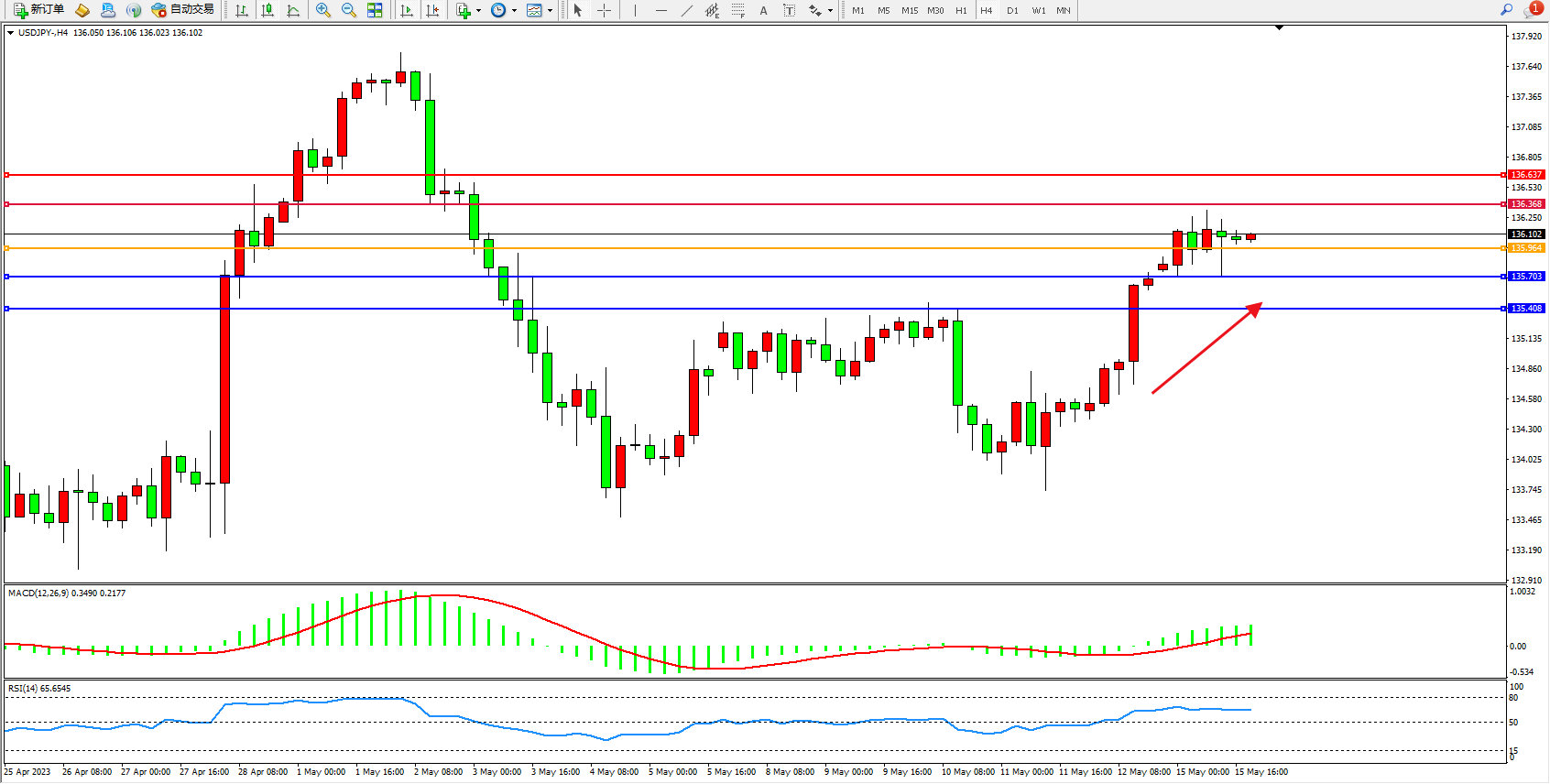 阻力位:136.368  136.637