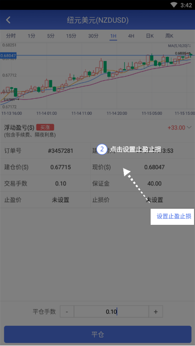3.设置止盈价,止损价,因现价实时波动,设置时需注意设置的价格符合参考范围